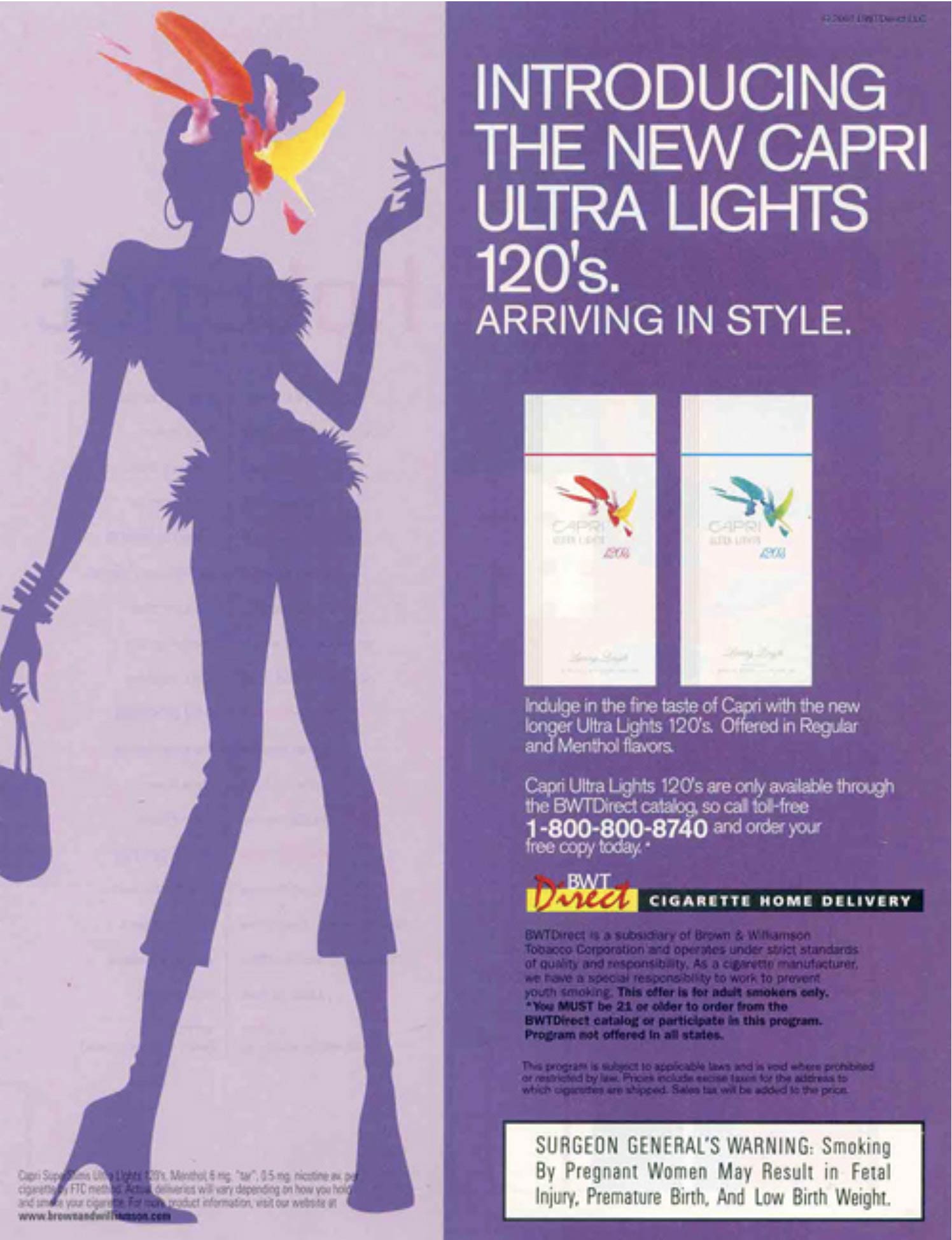 Capri January 29, 2024 by Cindy Chau Download imageTheme:Women's CigarettesCollection:CapriBrand:CapriManufacturer:Brown & Williamson Tobacco CorporationFormat:Web ImageTobacco Type:Advertisement