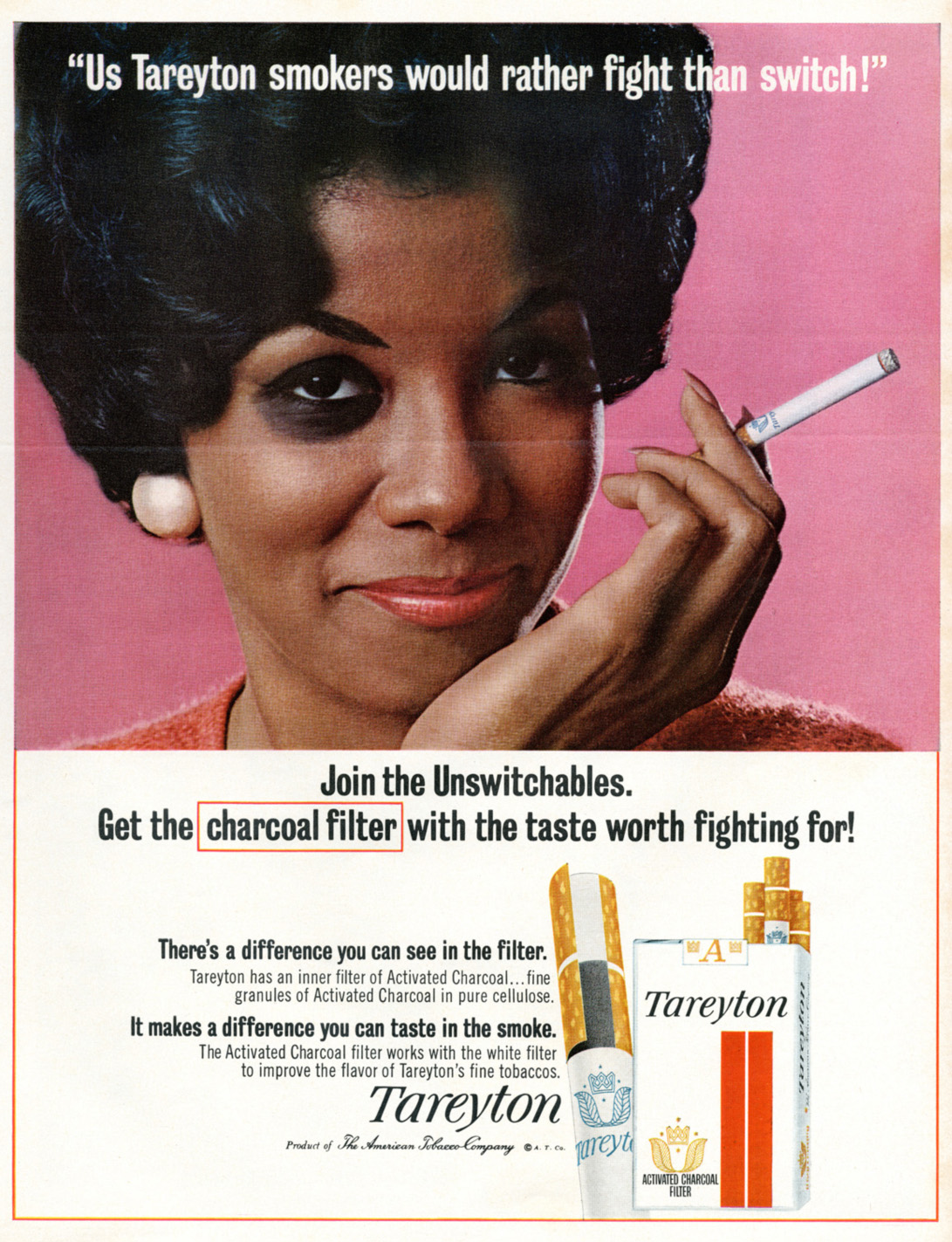 Other Brands – img11697 May 25, 2021 by sutobacco Download imageTheme:African AmericansCollection:Other BrandsPublished:1973Brand:TareytonManufacturer:American Tobacco CompanyFormat:AdvertisementTobacco Type:Cigarette