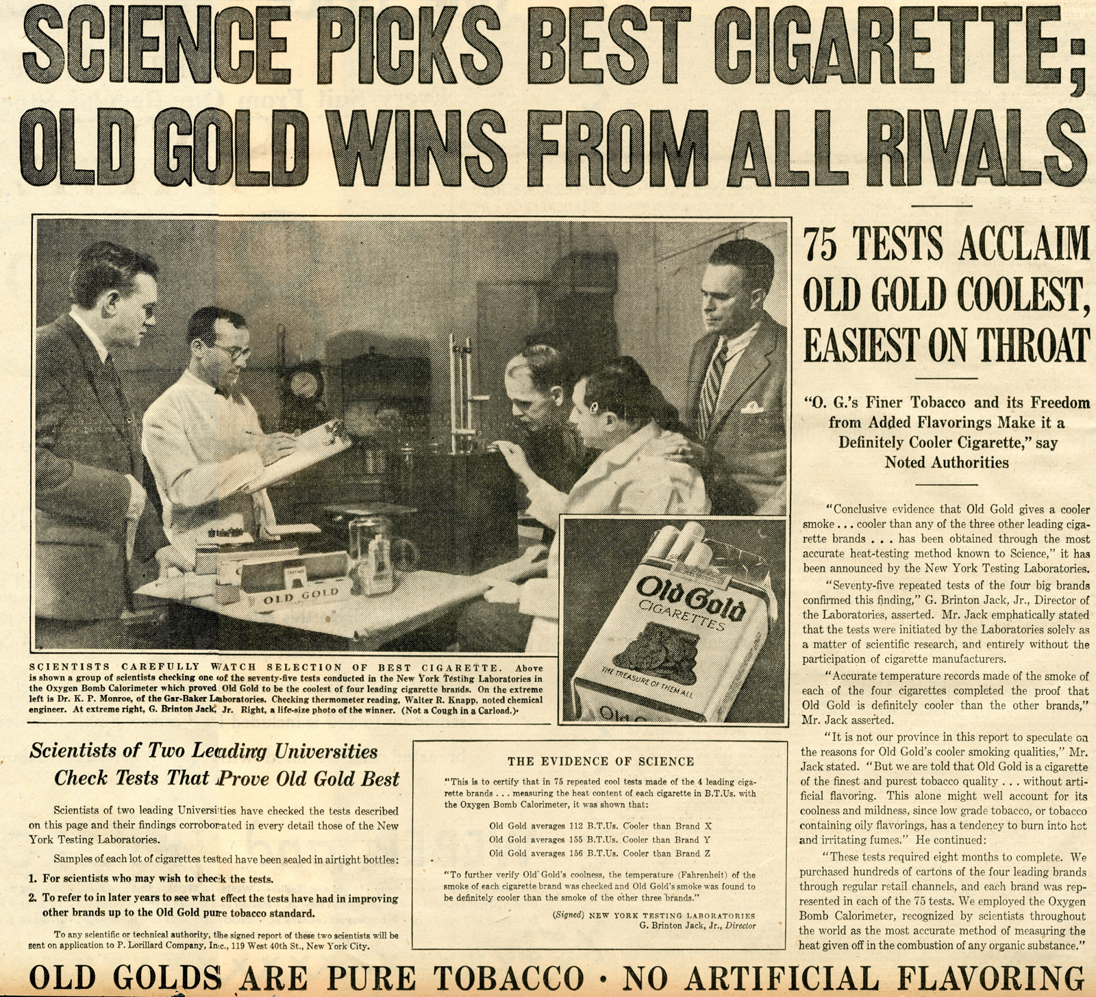 Science picks best cigarette; Old Gold wins from all rivals.