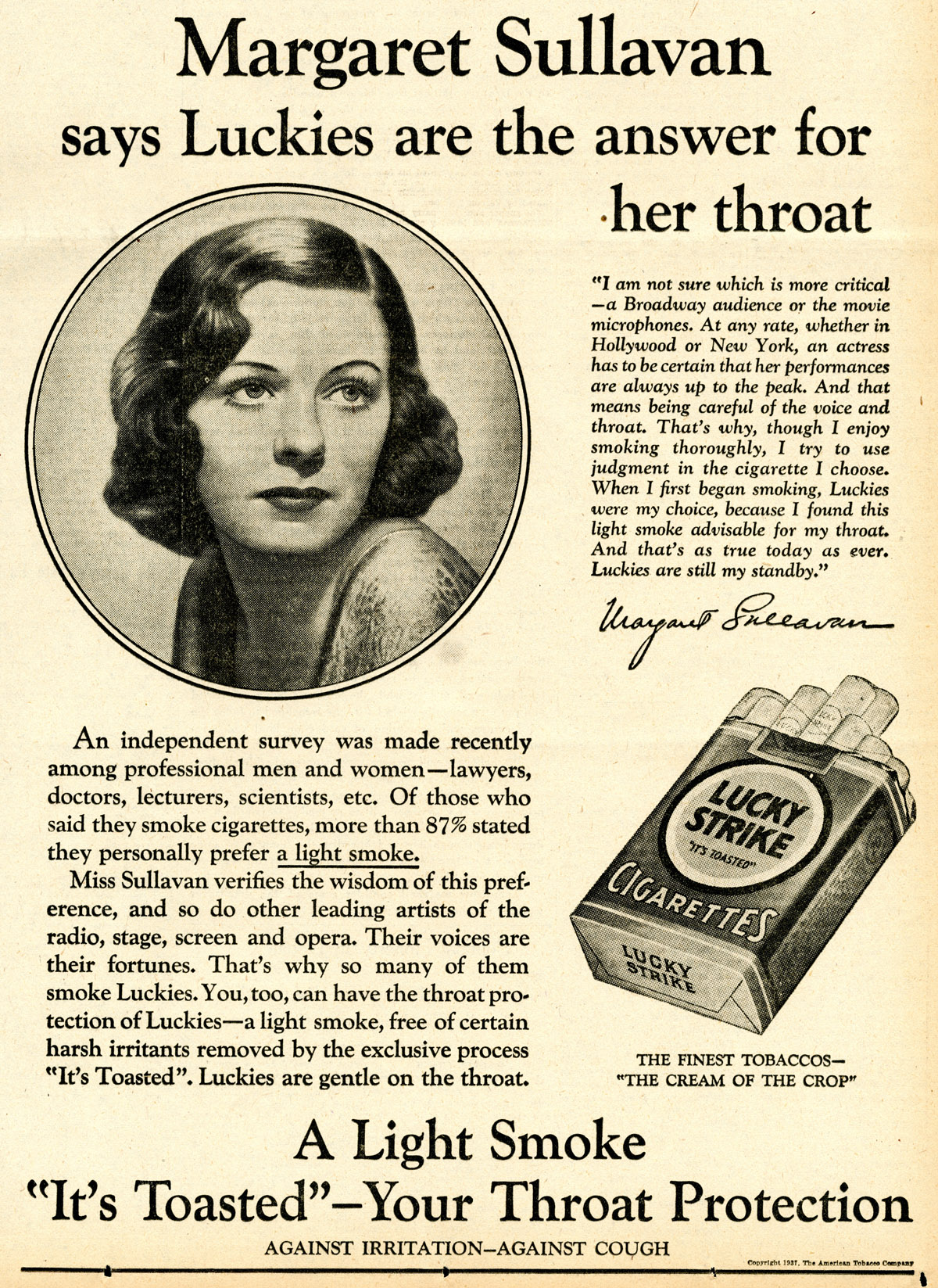 Movie Stars – Women – img2289 May 25, 2021 by sutobacco Download imageTheme:Movie StarsCollection:Movie Stars - WomenPublished:1937Brand:Lucky StrikeManufacturer:American Tobacco CompanyFormat:AdvertisementTobacco Type:CigaretteKeywords:actors, females