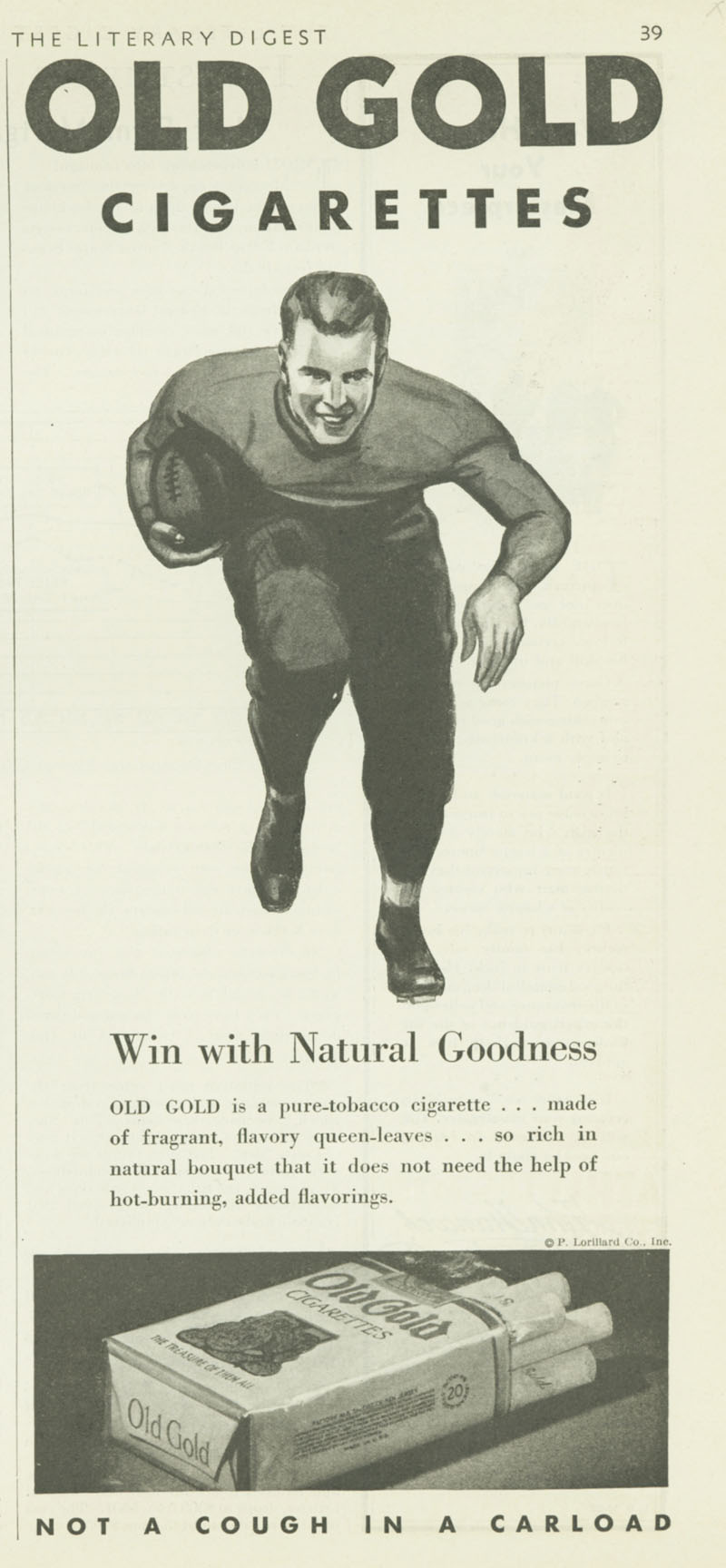Football – img4649 May 25, 2021 by sutobacco Download imageTheme:Smoking in SportsCollection:FootballPublished:1932Brand:Old GoldManufacturer:P. LorillardFormat:AdvertisementTobacco Type:CigaretteKeywords:Football, Male, Sports