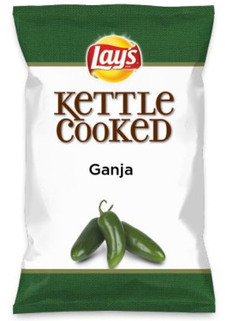 Social media influencers often use popular products such as Lay’s combined with photoshop to create images of marijuana themed treats. Typically high fat foods such as chips are a target.