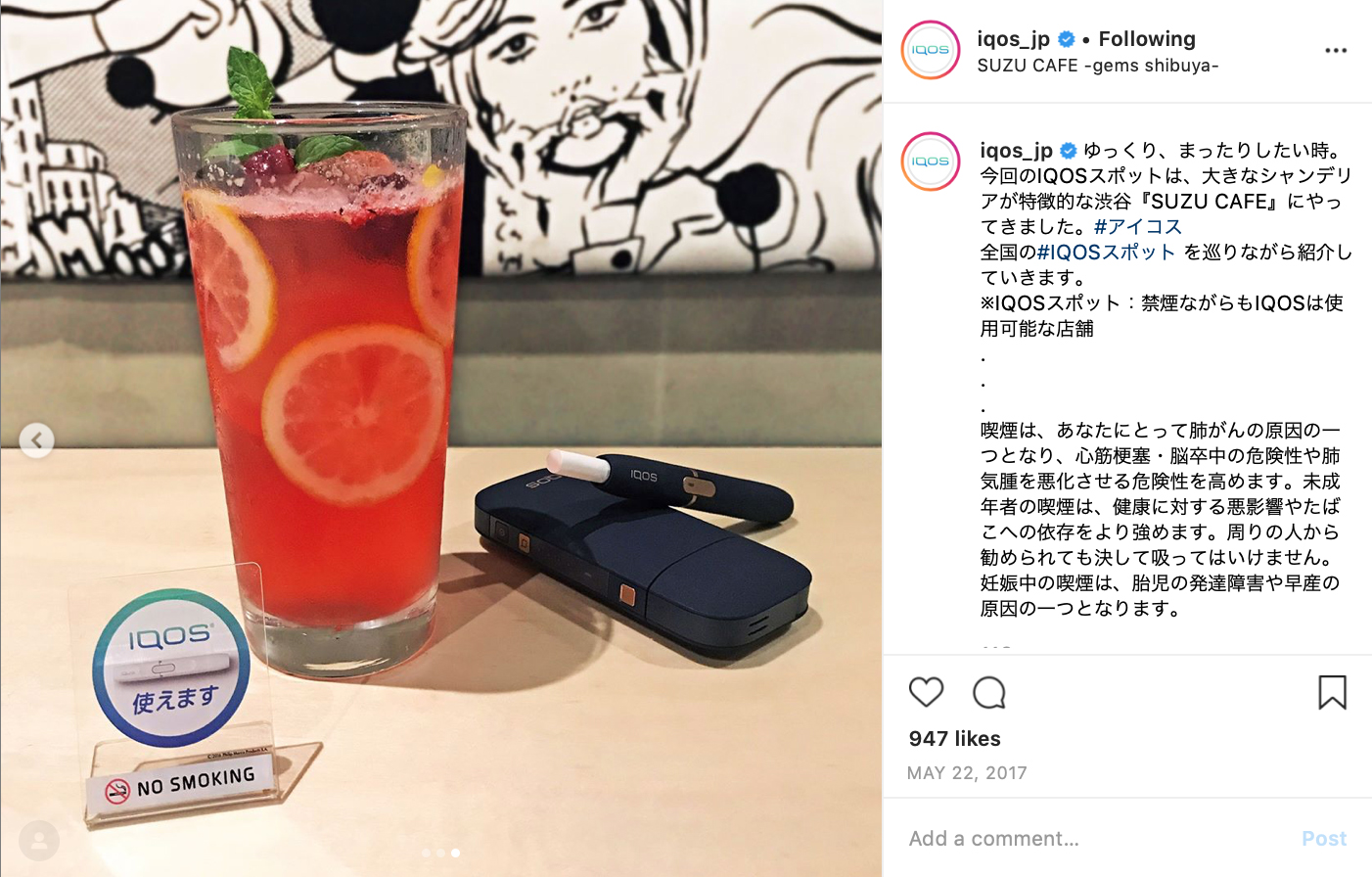 IQOS Friendly Places – img42788 May 31, 2021 by sutobacco Download imageTheme:IQOSCollection:IQOS Friendly PlacesPublished:2017Brand:IQOSManufacturer:Philip Morris International (PMI)Format:Web ImageTobacco Type:Heated Tobacco